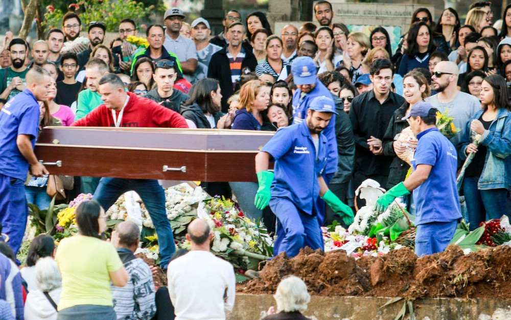 Enterro do corpo do ator Rafael Miguel no Cemitério Campo Grande, em São Paulo — Foto: Marcelo Gonçalves/SigmaPress/Estadão Conteúdo